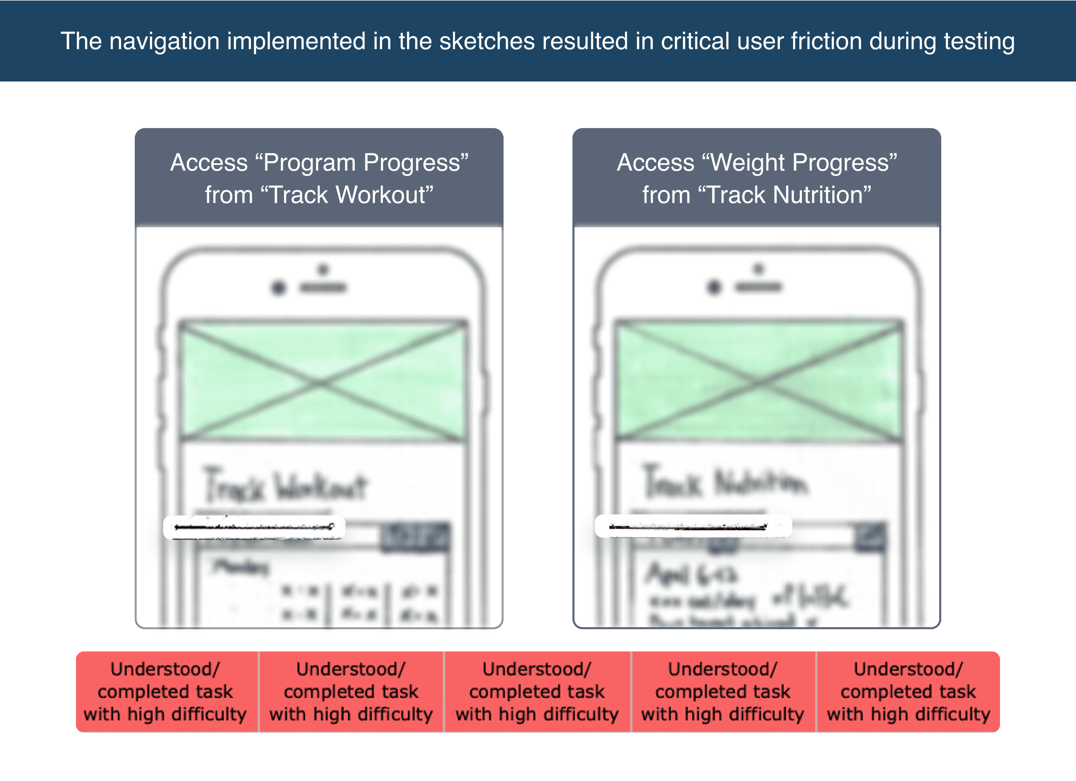 The navigation implemented in the sketches resulted in critical user friction during testing