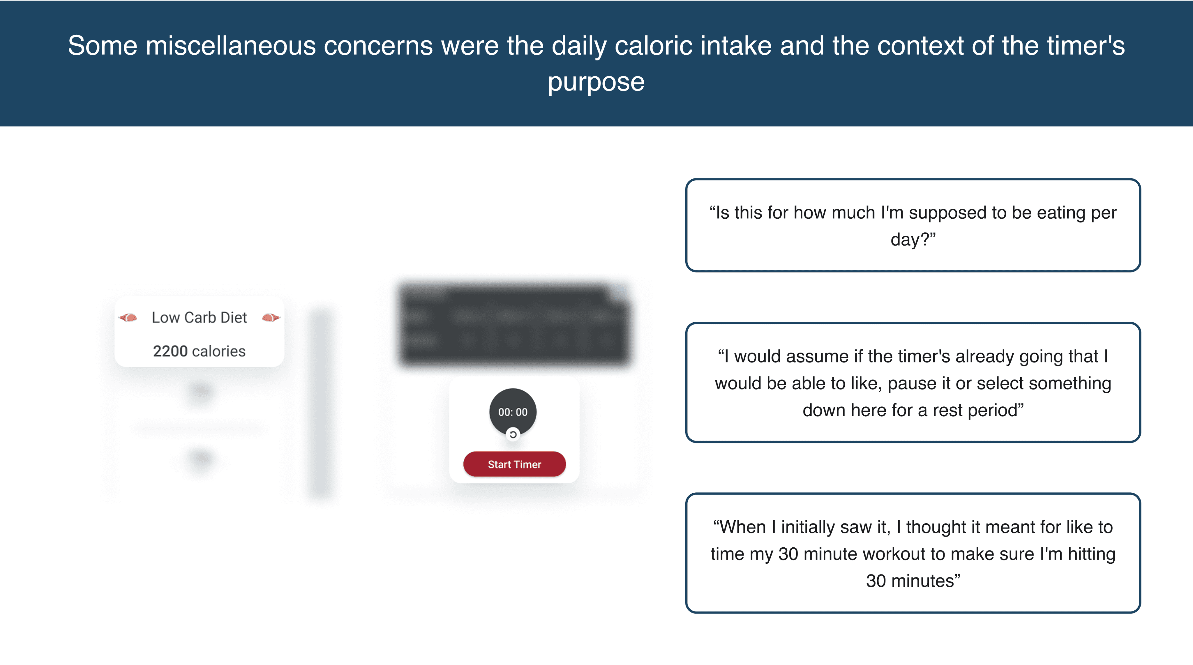 Some miscellaneous concerns were the daily caloric intake and the context of the timer’s purpose