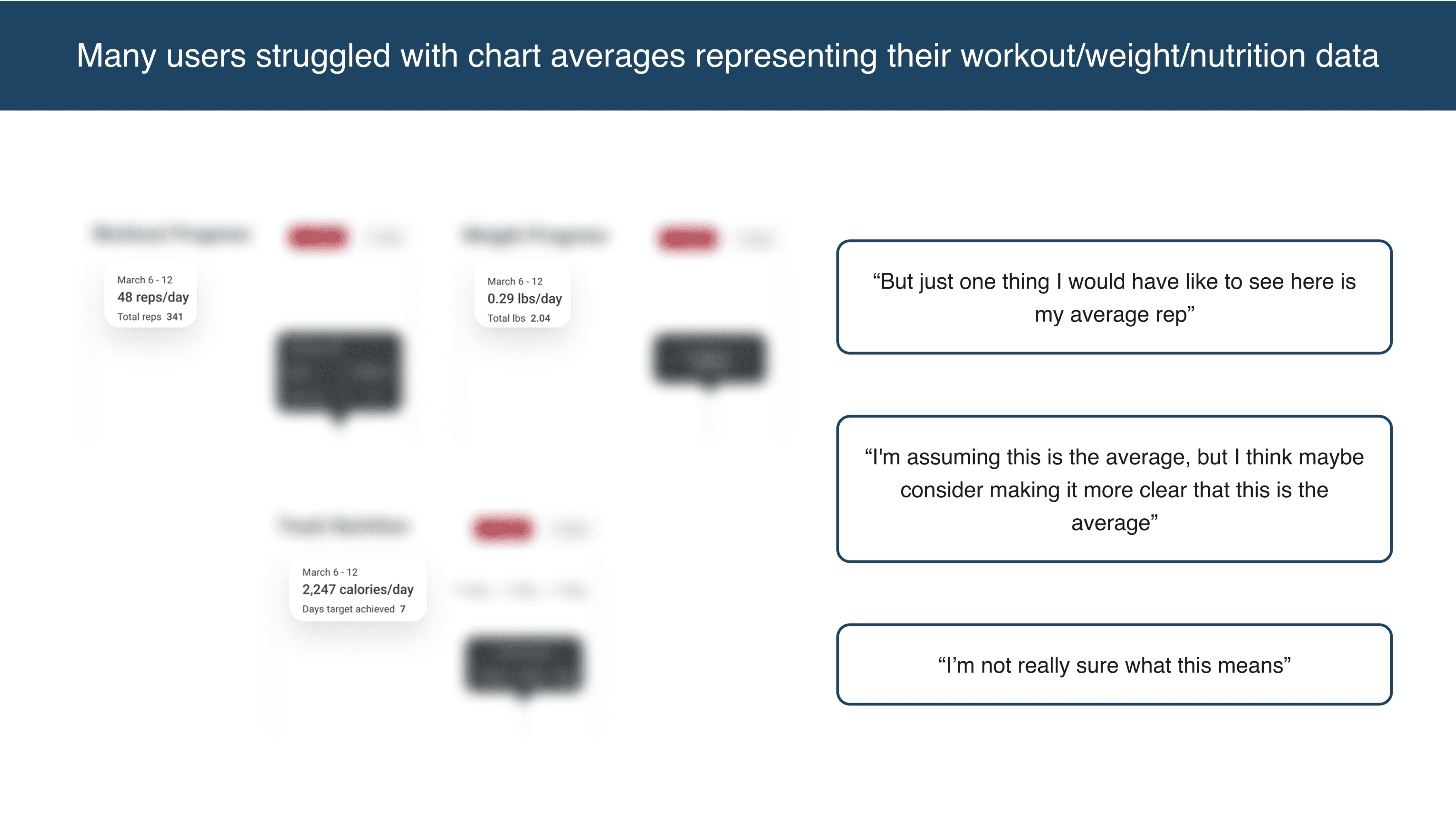 Many users struggled with chart averages representing their workout/weight/nutrition data