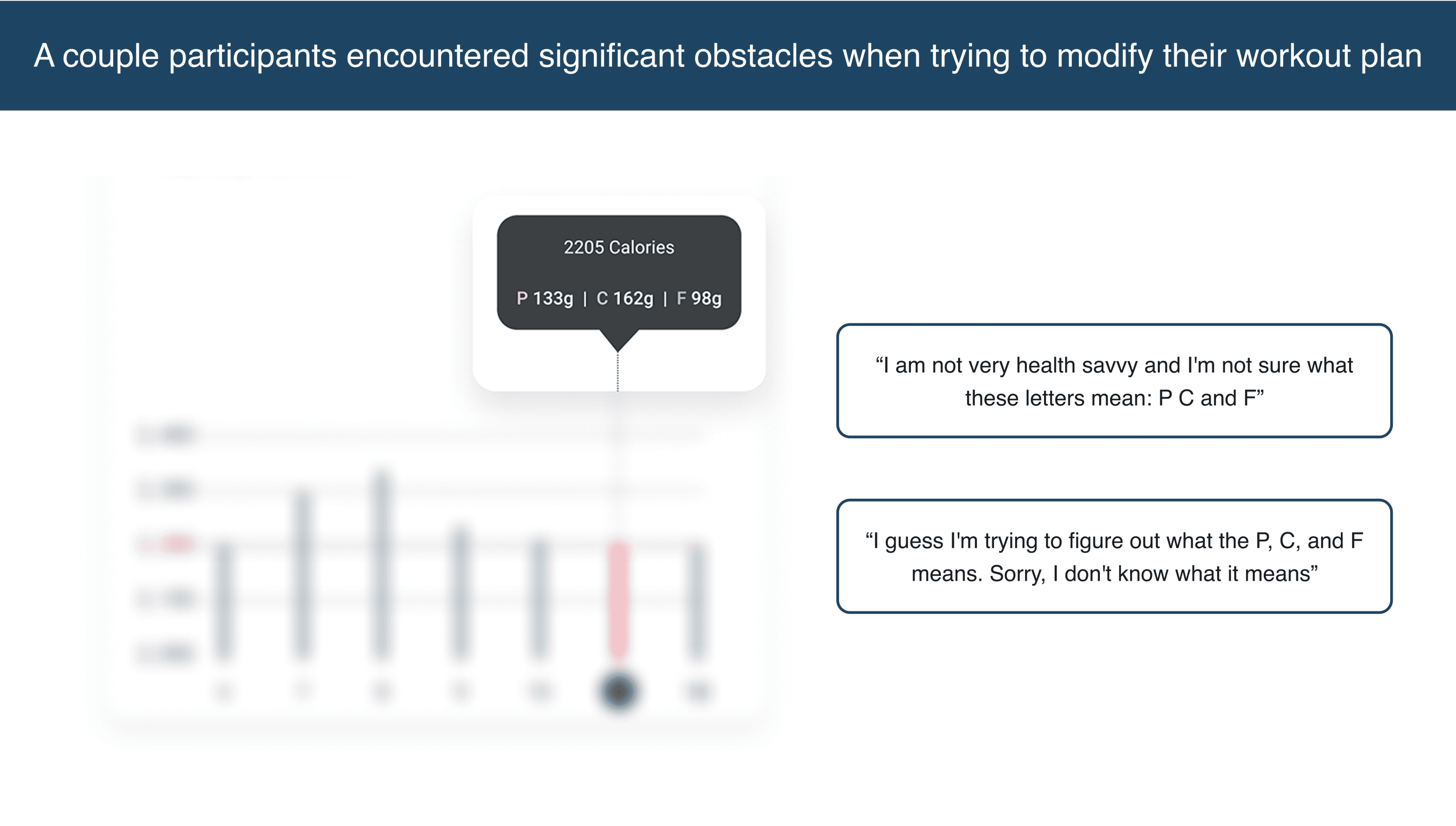 Users were confused by the labels P/C/F for protein/fats/carbs on the 'Track Nutrition' chart